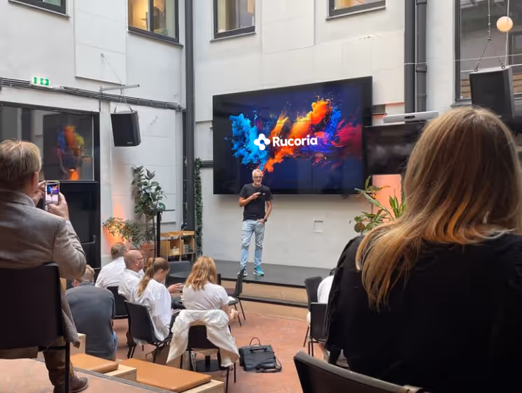 Henning Dalsegg fra BDO fortalte om markedsutsikter og drivere innenfor boligutvikling. Vårt produkt og tech team v/ Nico, Dag og Stian fra Rucoria rundet av den faglige seansen med å dele hva vi jobber på, og hva som våre kunder kan forvente seg i Rucoria i tiden som kommer.