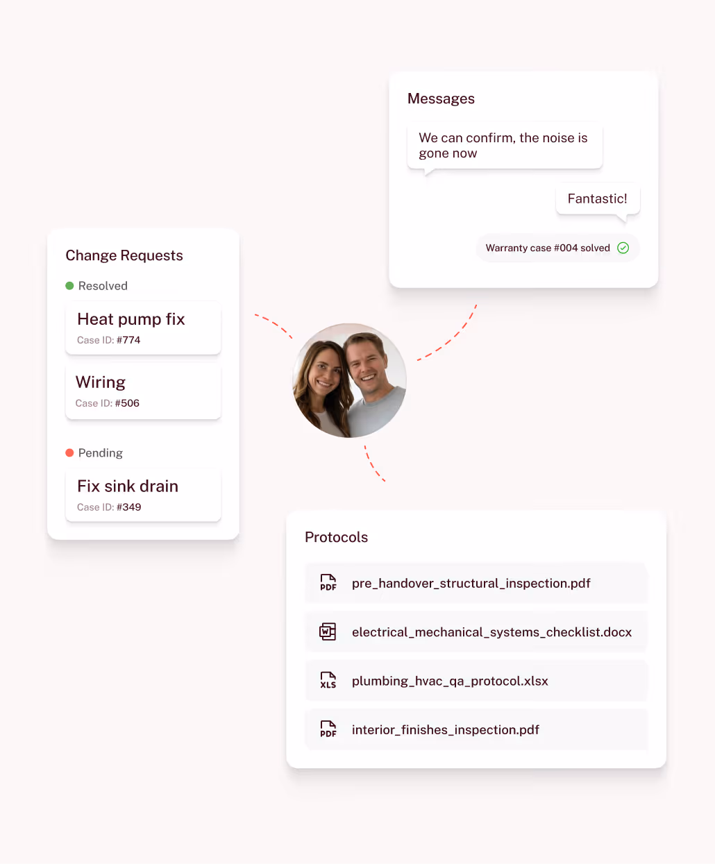 Give your warranty team a structured inbox, instant delegation, and full oversight. Give sub-contractors the context they need to act fast. Give homebuyers a simple way to submit claims, follow progress, and access all documentation about their home.